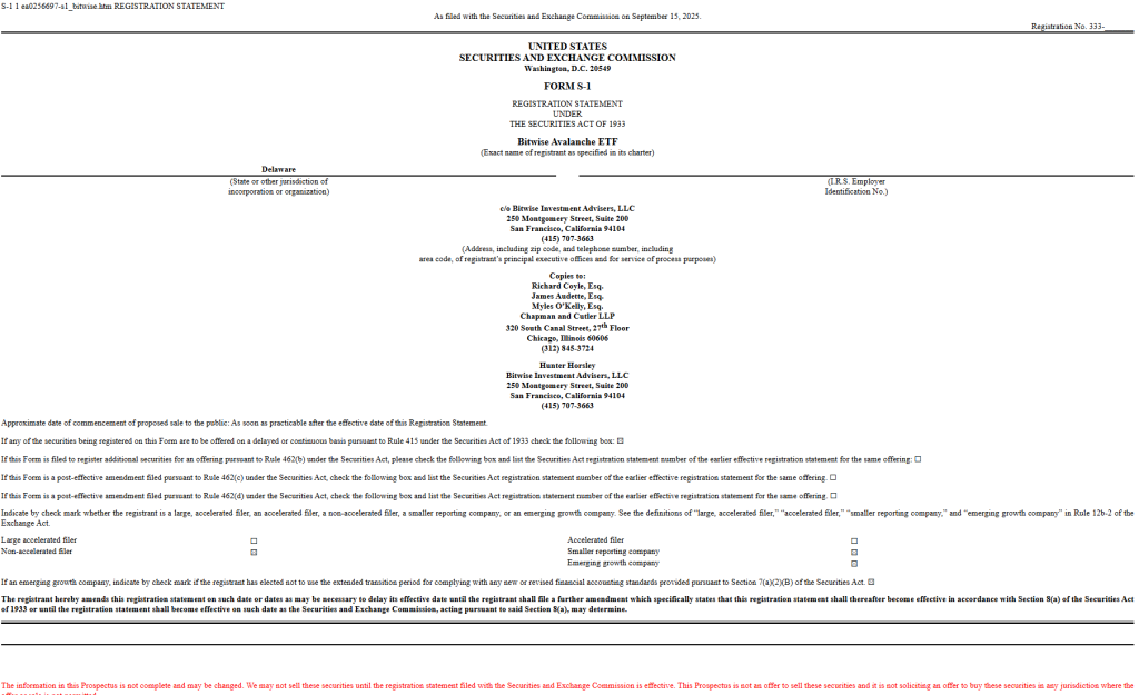 Bitwise’s application for an Avalanche-based ETF | Source: SEC